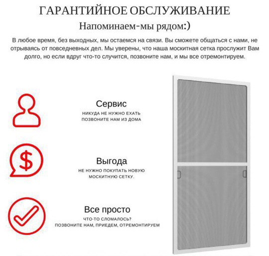 Мы даем гарантию на заказанные Вами москитные сетки - 1 ГОД. Это просто. Это удобно. Это надежно.